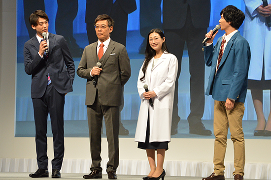 左から発表会に登場した竹内涼真さん、生瀬勝久さん、壇蜜さん、志尊淳さん