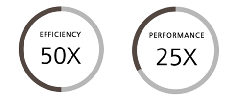 AI専用のNPUによってパフォーマンスは25倍、電力効率は50倍に。