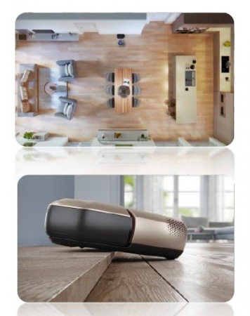 カメラと2方向のレーザーによる独自の「3Dビジョンテクノロジー」を搭載し、真っ暗な部屋でも360度全体を把握する位置認識と床上の障害物を3D検知する障害物認識を同時に行い、まるで人間の目で見ているように障害物や床上のコード類を巻き込まずに、効率よく清掃する。
