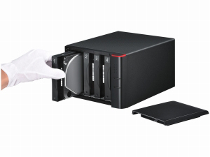 電源を入れたまま搭載ハードディスクを交換できる「ホットスワップ」に対応し、四つのRAIDモードのうち、「RAID 5」「RAID 10」「RAID 1」であれば、搭載ハードディスク故障の場合でも交換用ハードディスク(別売)に入れ替えて再構築が可能で、バックアップを停止させることなく、故障前の状態に回復することもできる。HDDの故障や冷却ファンの故障も検知してLEDとブザー音で知らせる。万が一、再構築できない故障によってデータへアクセス不能となった場合も「バッファロー正規データ復旧サービス」が対応する。
