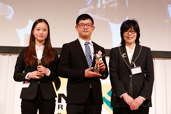 また「BCN ITジュニア賞」では、中国・四川省で開催されるモバイルアプリケーションの企画・開発コンテスト「Galboa(ガルボア)杯」で優秀な成績を収めた若者に「特別賞」を授与している。今年は、「商品化の可能性が高い」と評価を受けた作品を制作した、成都ソフトウェア学院の厳鵬さん、宋欣蔓さんが表彰式に招かれ、トロフィーを受け取った。