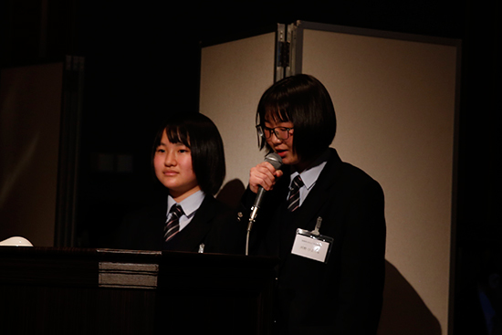司会を務めた愛媛県立松山工業高校の河野ひよりさんと大地楓さん