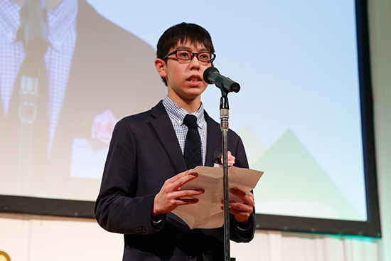 受賞者を代表して挨拶に立った、東京都立小石川中等教育学校の小川広水さんは「今回受賞したプログラミング言語の開発中に重ねてきた努力が、報われた思い」と喜びを表すとともに、「これまで自分の技術的な興味関心でプログラミングを楽しんできたが、これからは多くの人の役に立つもの、そしていずれ人の心を動かせるものをつくれるようになりたい」と述べ、より高い目標に向かって技術を磨いていく意気込みを語った。