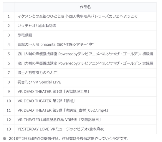 この見放題プランは、インターピアとejeが提供する「VR THEATER」で、KDDIが提供するシステムとVR機器によって1回あたり利用料900円(税込み)で楽しめるサービス。13作品が見放題となる。またKDDIは、2月8日から3月31日まで、auスマートパス会員とauスマートパスプレミアム会員がお得に見放題プランをを体験できる「VR利用料900円割引キャンペーン」を実施する。