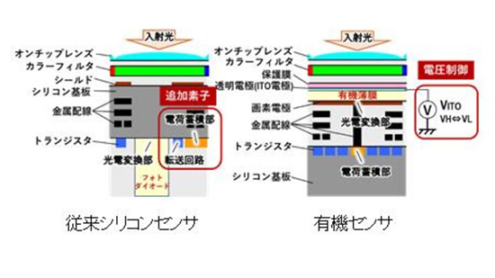 パナソニックは2月14日、8K画質を実現する、3600万画素の高解像度で60fpsの高速フレームレート読み出し、45万電子の高飽和と、感度変調機能を有するグローバルシャッタ撮像が可能なCMOSイメージセンサ技術を開発したと発表した。光電変換を行う有機薄膜と電荷蓄積・読み出しを行う回路部を完全独立に設けた積層構造とし、この回路部に、高速ノイズキャンセル技術と高飽和化技術を新たに搭載。有機薄膜に加える電圧を制御し、感度を変更できる有機センサならではの構成を用い、グローバルシャッタ機能を実現することで、業界で初めて、これらの性能を同時に実現することに成功した。