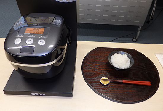 「とらひめ」は、タイガー魔法瓶のキャラクターである「トラ」を食材名に込めた米粒状加工食品で、原材料はタピオカと手づくりこんにゃくなどで着色料を使わずに加工した。糖質約47%オフ、カロリー約50%オフ、食物繊維約8倍アップの効果が得られ、「ご飯が食べられない人にも、おいしく食べてもらいたい」(和田常務)と、タイガー魔法瓶自らが開発した。