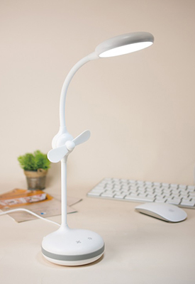 仕事や勉強時に手元を明るく照らすLEDスタンドライトに、ふんわりとやさしい風を届けるファンを搭載。暖房が利いた室内で勉強時のリフレッシュ、夏のクールビズ対策など、季節を問わずに使える。USB式でパソコンなどのUSBポートにさすだけで使用でき、本体の各スイッチを軽くタッチするだけでオン・オフが可能。発熱を抑えた省エネ仕様のLEDで照度400ルクス(高さ30cm直下)のやわらかい光であるほか、角度が自由に調節できるフレキシブルアームで好みの位置に光を照らせる。