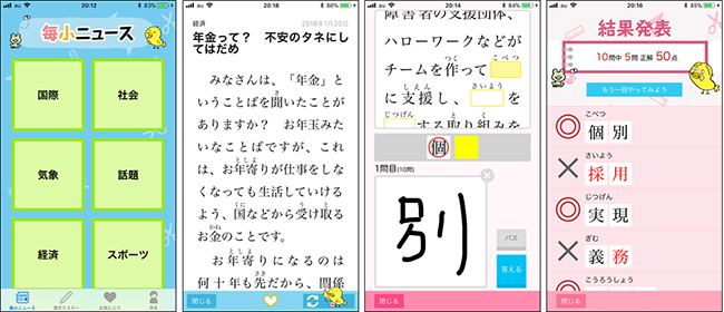 【製品速報】1か月650円で利用可能、「毎小ニュースで漢字マスター」がiPhoneにも対応