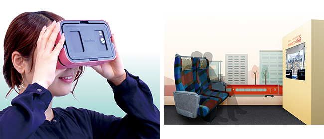 VR体感コーナーでは、車内や箱根をVRでバーチャル体験できる(左:VR体感コーナー、右:展望席コーナー)