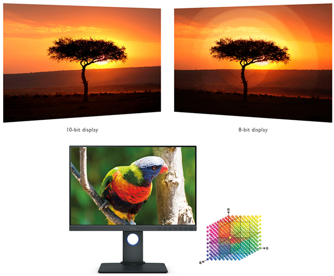 さらに、10億色以上を映し出して滑らかなグラデーションを実現する「10-bitディスプレイ」や、RGBのカラーブレンド精度を向上させる「14-bit 3D LUT(ルックアップテーブル)」を採用。「Adobe RGB」と「sRGB」の両方の色空間でDelta E≦2を満たし、オリジナルに限りなく近い画像を描写することができる。