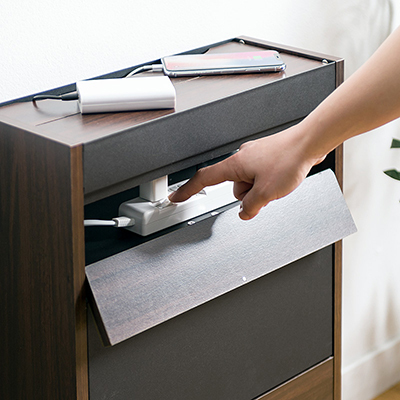 ケーブル類に加えて、本、タップ、ルータ、DVD、ブルーレイ、ゲームソフト、コミックなども収納できる。スマートフォンやタブレット端末のスタンドにもなる。ケーブル類などを隠してキレイにできるため、お洒落な部屋にオススメ。