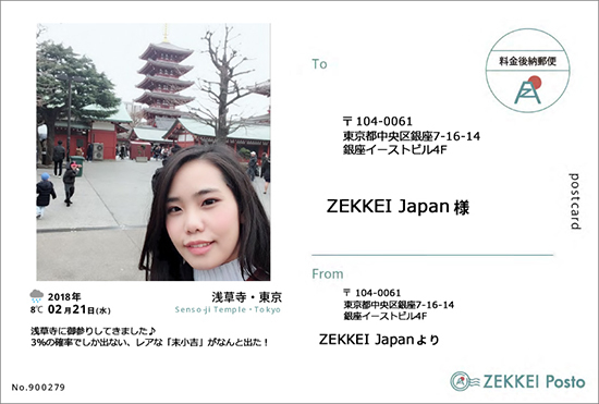 インバウンドメディア「ZEKKEI Japan」を運営するティ・エ・エスは3月1日、絶景スポットを訪れたインバウンドを中心とした観光客がスマートフォン(スマホ)からオリジナルの絶景ポストカードを送ることができる新サービス「ZEKKEI Posto」の提供を3月7日に開始すると発表した。
