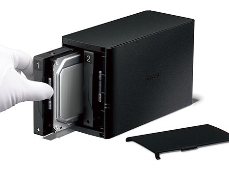 ハードディスクを2台搭載し、安全性が高くて保存容量の少ない「ミラーリング(RAID1)モード」、高速性と保存可能容量が大きくて安全性が低い「ストライピング(RAID0)モード」の二つのRAIDモードに加えて、「スパニング(JBOD)モード」、二つのハードディスクを別々のドライブとして扱う「通常モード」の四つのモードに対応。電源を入れたまま搭載ハードディスクを交換できる「ホットスワップ」に対応し、RAID1であれば搭載ハードディスク故障の際も交換用ハードディスク(別売り)に入れ替えて再構築することができる。HDDの故障や冷却ファンの故障も、検知してLEDとブザー音で知らせてくれる。