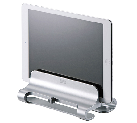 サンワサプライは3月7日、タブレット端末やノートPCを縦置きにしてデスクスペースを有効に活用できるアルミスタンド「PDA-STN22S」の販売を開始すると発表した。