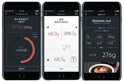 抽出方法は、専用アプリ上でプアオーバー(透過法)、イマージョン(浸漬法)、コールドドリップ(水だし)の3種類から選べる。アプリを通じて世界中のコーヒー愛好家とのレシピの共有も可能。