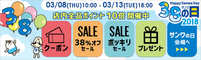 サンワサプライは、3月8日を「サンワの日」として日本記念日協会に記念日登録、直販サイト「サンワダイレクト」で、38%オフセールをはじめ、300円オフクーポン、8%オフクーポンなど、記念日にちなんだイベントを開催している。