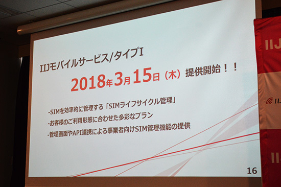 3月15日に提供を開始する「IIJモバイルサービス/タイプI」