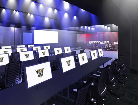 個人利用以外の使い方を想定して、eスポーツ大会の開催を前提としたステージと防音仕様「ボックス型選手席」を完備。インターネット実況配信設備とあわせて、大規模な大会やイベントを開催できる。
