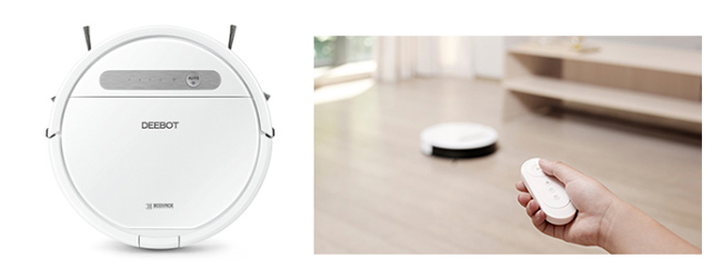 「DEEBOT OZMO 610」も同様に、床に合わせて変更できる2種類の吸引方式(メインブラシあり/なし)とスマホアプリに対応し、スマホを使って簡単に、前進や回転などの方向制御や清掃モードの変更、タイマー設定などができる。専用のリモコンも付属する。カラーはプラチナホワイト。税別価格は5万5000円。