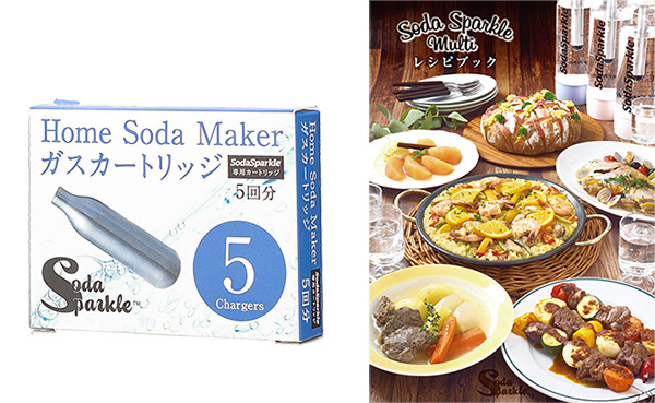 1回あたり水なら1L、ジュースやワインなら650ml炭酸化できる。電源は不要。専用ガスカートリッジは手のひらサイズで、使用後は不燃ゴミとして捨てられる。専用ガスカーロッジ5本、レシピブックなどが付属する。1回使い切りのソーダスパークル専用ガスカートリッジは、24本入りで税別1980円。