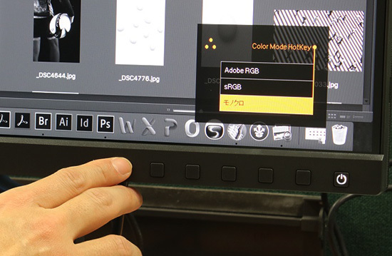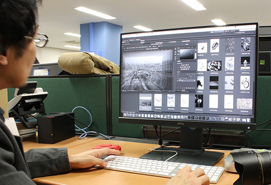 写真の編集を開始した大星氏。印刷に適しているのは「Adobe RGB」だが、Webで使用する際に広く使われているのは、多くのディスプレイが対応している「sRGB」だという。「SW240の『カラーモードホットキー』を使って『Adobe RGB』と『sRGB』を素早く切り替えながら色味を調節すれば、紙で見た場合でも、Webで見た場合でも、同じ色味になるよう整えやすい」(大星氏)。