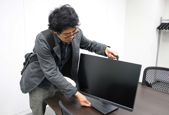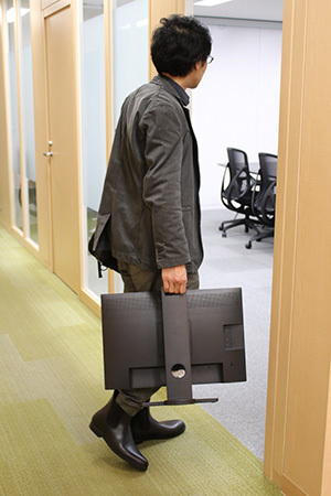 写真を披露する際やクライアントへ持ち込む際に、相手の視環境がわからないこともある。そういった場合には、ディスプレイを持ち込むのもひとつの手だという。重さは4.5kgと少々重いものの、「本体には取っ手がついており持ち運びやすい」(大星氏)と話す。