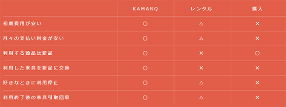 サブスクリプションのKAMARQと、レンタル・購入との比較