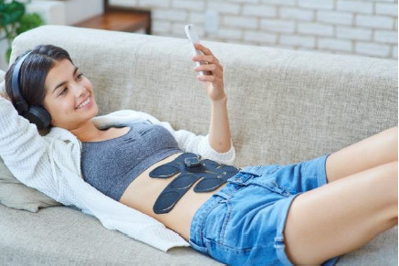 8個のパッドが腹部全体を刺激してインナーマッスルを鍛える