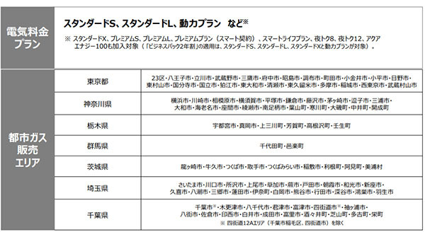 対象の電気料金エリアと都市ガス販売エリア