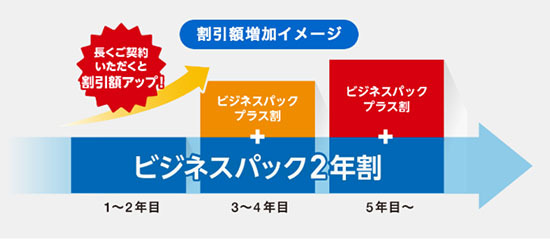 「ビジネスパック2年割」&「ビジネスパックプラス割」の割引額アップのイメージ