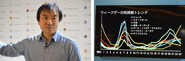 Echoの利便性を支えるAlexaスキルは、この4か月で250から600以上に増加した。Alexa Business Groupの柳田晃嗣 GMは「数が倍増しているだけでなく、ローンチ当時から存在するアプリも進化している」とコメント。時間帯ごとの利用者の傾向も徐々に分かってきているという。