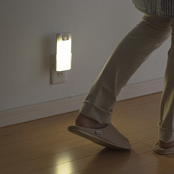 人感センサによって点灯して約20秒後に消灯する。常時点灯にも対応。ACコンセントに差し込むホルダーで充電でき、ホルダーから取り外して簡易的な懐中電灯としても使える。ヘッドライトが点灯、フロントライトが点灯、ヘッドライトが点滅と、光り方は3パターン。停電時には、コンセントから停電を感知すると本体に蓄積された電力を使って自動点灯する仕様になっており、防災対策のアイテムとしても利用できる。