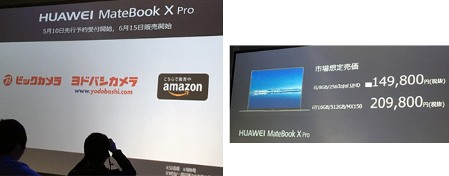 ファーウェイ・ジャパンは、13.9インチのクラムシェル型ノートPC「HUAWEI MateBook X Pro」を6月15日に発売する。超スリムデザインで、MateBookシリーズで初めてタッチパネルに対応した。カラーはスベースグレー。価格はオープンで、税別の実勢価格は14万9800円からの見込み。