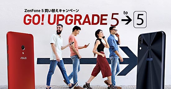 ASUSは、新世代ZenFone 5シリーズ3機種の発売を記念して、6月11日から7月31日まで、オンラインショップの「ASUS ZenFone Shop」と、東京都港区にあるオフィシャルストア「ASUS Store Akasaka」限定で、「『GO! UPGRADE 5』ZenFone 5買い替えキャンペーン」を実施する。