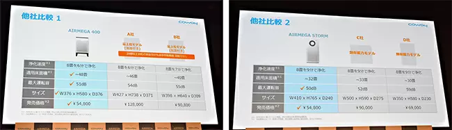記者が注目したのは価格帯だ。機種ごとの価格は公表されなかったが、4機種の価格は4万5000円~5万5000円のレンジを予定しているとのこと。これは国内メーカーの最上位機種はもちろん、“単一機能特化”を売りにするブルーエアやダイソンの同スペック帯のモデルと比較してもお手頃だ。海外メーカーのモダンなデザインの空気清浄機を購入したいが価格がネック、というユーザーにはちょうどよい選択肢になるかもしれない。