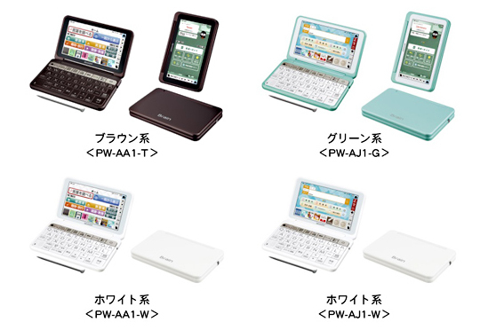 PW-AA1は、百科辞典や動植物図鑑、文学作品から旅行会話集まで、暮らしに役立つジャンルのコンテンツを収録。PW-AJ1は、英検対策書のほか、英語を楽しく学ぶアプリケーションや教材が充実しているほか、小学校高学年から高校受験まで使える。さらに、電子辞書専用コンテンツ販売サイト「ブレーンライブラリー」から、好みのコンテンツをダウンロードして追加が可能。各種外国語辞典や専門書など、約4万点から選べる。