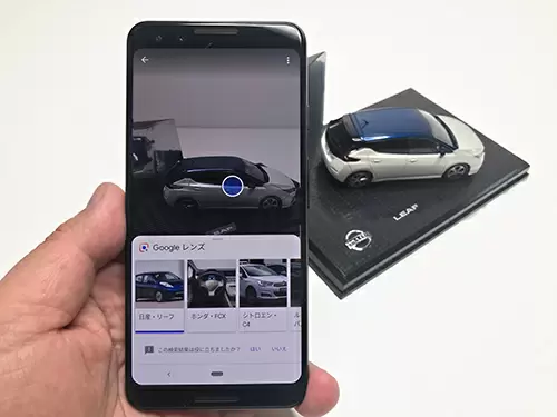 「Pixel 3」「Pixel 3 XL」の発売に合わせて、Googleレンズが日本語に対応しました。このサービスはスマートフォンのカメラで捉えた被写体の名前や所在地、関連商品などを表示してくれる機能です。試しにミニカーを撮影したところ、1発で車種名を表示しました。あえてアイコニックなフロントではなく、似たようなアウトラインが多いサイドを撮影したのですが大当たりです。