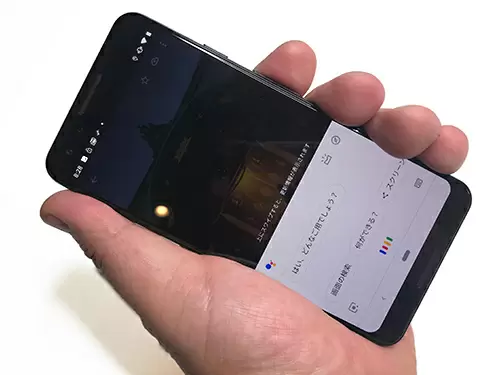 また本体をギュッと握ると、Googleアシスタント画面が表示されます。片手でも手軽に操作できるように、極力指を動かさずに済むようなユーザーインターフェースとなっています。
