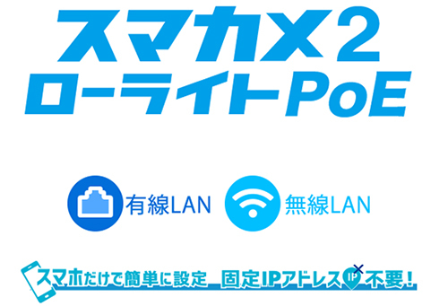 本体にはマイク・スピーカーを装備。無線LAN・有線LAN(PoE対応)に対応し、設置の自由度が向上した。無料のAndroid用アプリ「スマカメ」、iPhone用アプリ「スマカメ2」に加え、数台モニタリング・録画・再生が可能な本格的な監視・防犯システムをコストを抑えて構築できるWindows専用アプリケーション「スマカメPro」にも対応する。