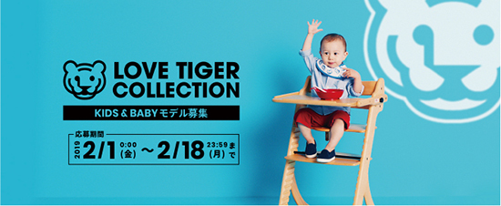 また、Instagramで、今回のキャンペーンのプレゼント賞品をいち早く着用して宣伝する「LOVE TIGER COLLECTION kids & baby モデル」を募集する。応募可能な子どもの年齢は0歳~4歳。