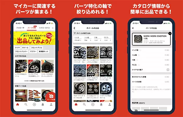 メルカリは、2月4日、グループ会社であるマイケルが運営する車好きのユーザーを対象としたコミュニティアプリ「CARTUNE(カーチューン)」内でカーパーツに特化した売買機能「CARTUNEパーツ市場」を開始した。