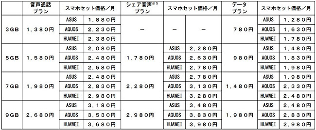 「3年学割」は、学生を中心とした25歳以下のユーザーを対象に、契約日から3年間、月額基本料金はそのままでデータ容量を1GB増量するプラン。NTTドコモ回線、au回線に対応しており、データ通信専用プランを含め、11種類の料金プランを用意する。なお新規契約時には、別途初期費用としてSIMカード1枚あたり3000円が必要。