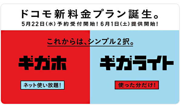 NTTドコモは、6月1日に開始する新料金プラン「ギガホ/ギガライト」と引き換えに、一部のサービス・割引プランの新規受付を終了する。なお、既存プラン利用者は引き続き利用できる。