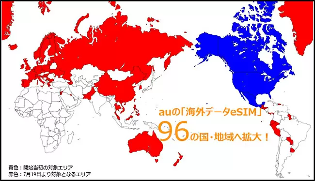 「海外データeSIM powered by GigSky」は、世界中でトラベルSIM事業を展開する米GigSkyが運営するプラットフォームを活用して提供しており、今回の追加で、対象エリアは、北米を含む96の国・地域に拡大した。