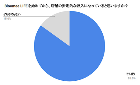 また、ユーザーに花を届けている提携店舗に実施したアンケートによれば、全国の切り花の出荷量がダウントレンドにあるなか、85%以上の店舗が「Bloomee LIFE」は安定的な収入源になっていると答えている。通常、花屋では「母の日」などの繁忙期に売上が偏り、閑散期との差が大きい傾向にあるが、定期購入のBloomee LIFEは、シーズンの影響を受けにくいためだ。