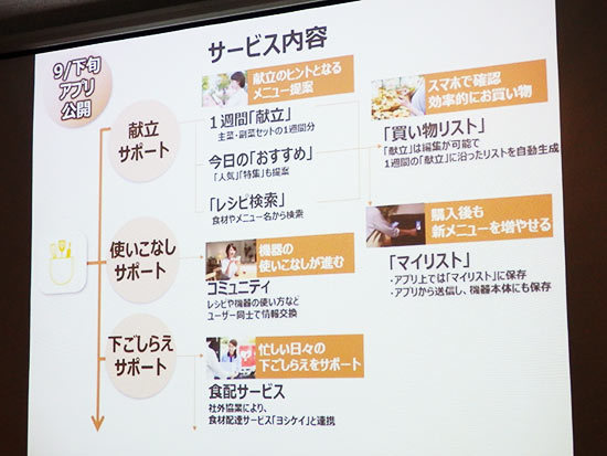 「使いこなしサポート」では、ユーザー同士で独自メニューや機器の使い方などを共有する。すでにパナソニックではWeb版の「キッチンポケット」を14年11月から運用しており、そこには約300万人(登録会員約17万人)のユーザーがいる。当面は、Web版ユーザーのスマートフォンアプリへの登録を、どれだけ促せるかがカギになりそうだ。