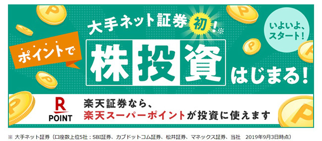 楽天証券は10月28日、国内株式(現物)で、楽天スーパーポイントを1ポイント1円として、購入代金・取引手数料の全額または一部に利用できる「ポイント投資(国内株式)サービス」を開始した。