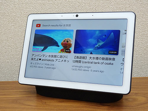 Google Nest Hub Max(以下:Nest Hub Max)は大きさが10インチ、解像度が1280×800画素のHDタッチディスプレイを搭載している。このディスプレイを支える筐体の内部には3インチのウーファー1基と、18mmのトゥイーターを2基載せた。これらのユニットを総合出力10Wのアンプでドライブする。内蔵マイクに話しかけて、音声コントロールで天気やニュースを聞いたり、YouTube MusicやSpotifyの音楽再生、YouTubeの動画視聴など様々な用途にも活用できる。