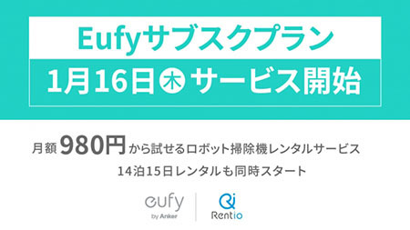 アンカー・ジャパンは、スマートホームブランド「Eufy(ユーフィ)」で、レンティオと協業してEufy初のロボット掃除機レンタルサービス「Eufyサブスクプラン」を1月16日にスタートした。料金は、月額980円からとなる。