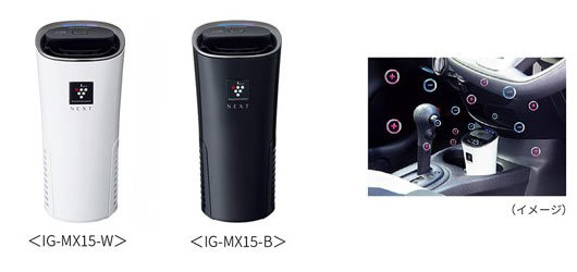 IG-MX15は、プラズマクラスターNEXTによって付着カビ臭の消臭スピードを約2倍以上に高め、毎日の買い物や家族の送迎など短時間の乗車でも消臭効果を発揮する。また、長時間の乗車では、「カビ臭」「タバコ臭」に加え、新たに「汗臭」「体臭(30~40代特有)」「食べ物臭」「ペット臭」の消臭効果を実証し、車の中で気になる「6大付着臭」を消臭する。